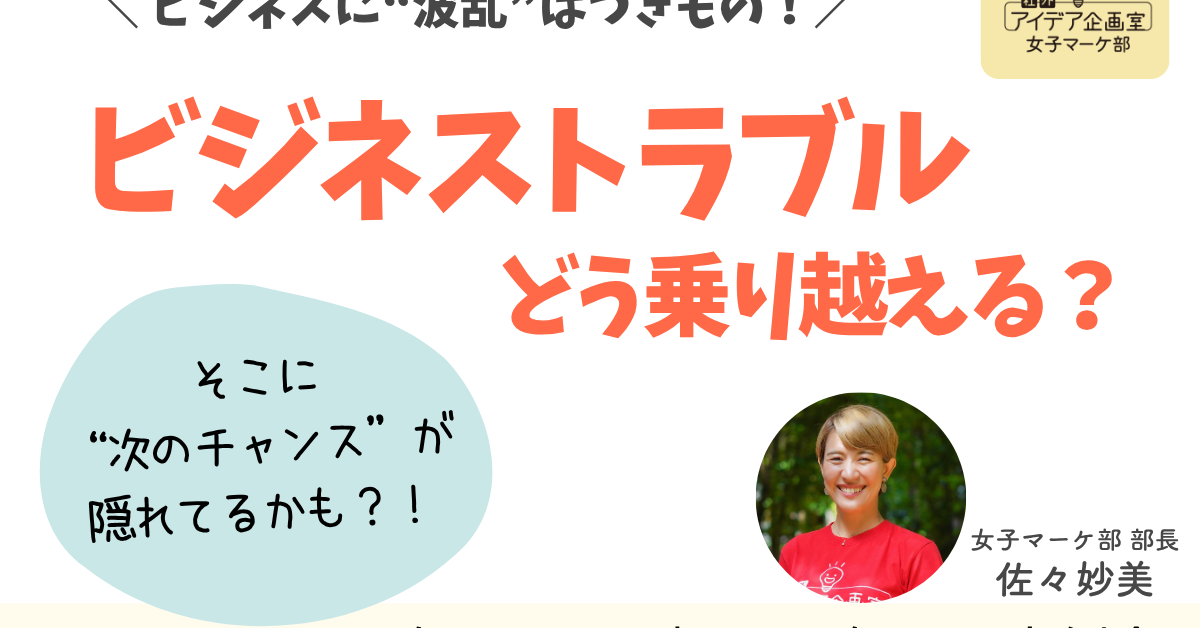 思わぬトラブルで落ち込んだ経験は誰しもありますよね。人生でもビジネスでも、毎日一生懸命生きていれば、何かしら問題は起こるもの。 順風満帆に見える佐々妙美部長にも、実は大きなトラブルの経験があるんです。 &n … 続きを読む ビジネストラブルはどう防止する?困難を好機に変えて乗り越えていくには