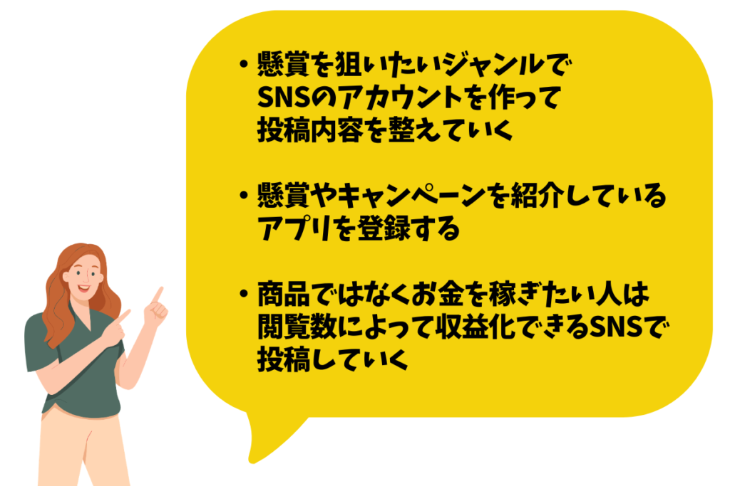 そうなんやー。懸賞とかっていろんな企業がやってて、SNSだったら「キャンペーン実施中」とか検索してもらうと出てくるんです。その中から興味があるものに応募してもらうといいと思うんですけど。