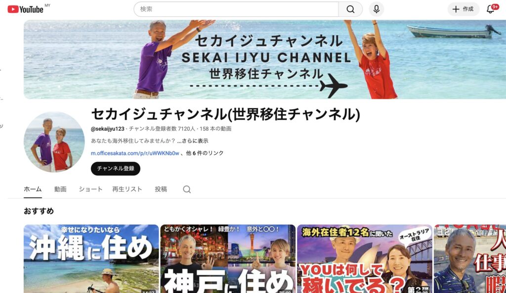 セカイジュチャンネル」っていう、世界移住生活を紹介しているチャンネルなんですけど、やっと登録者数が7,000人を超えました。