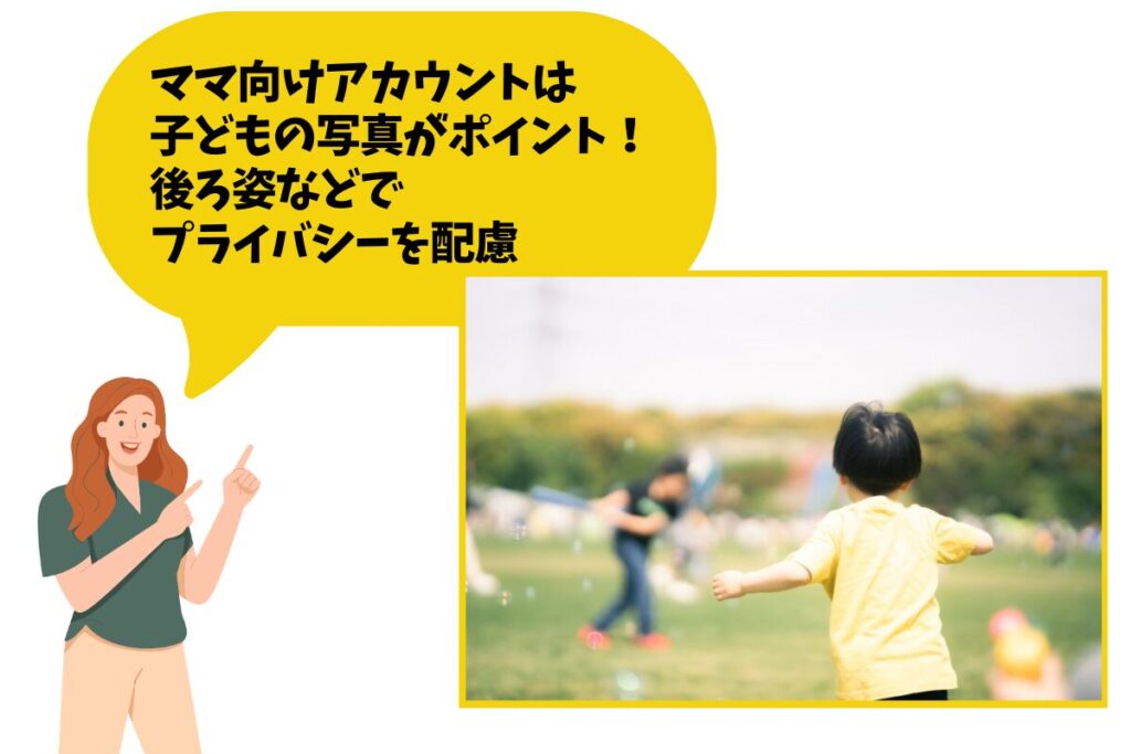 子ども向けの商品だったら、お子さんがその商品を使ってる姿とか、顔出ししなくてもいいので、後ろ姿だけ写真に撮って載せたりとか。コンセプトを決めて、普段から投稿しておくといいかなと思います。