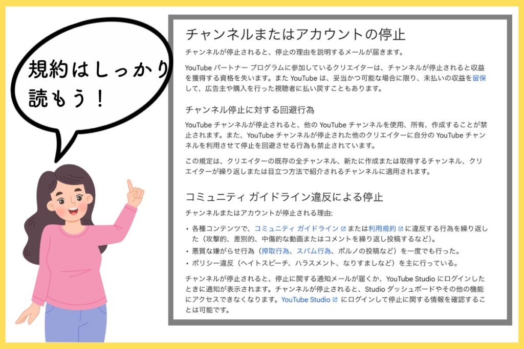 とにかく最近厳しくなってるので、そこはちゃんと調べてみてほしい。「垢BANされないためには」みたいな動画もYouTubeにはあるので見てみてください。