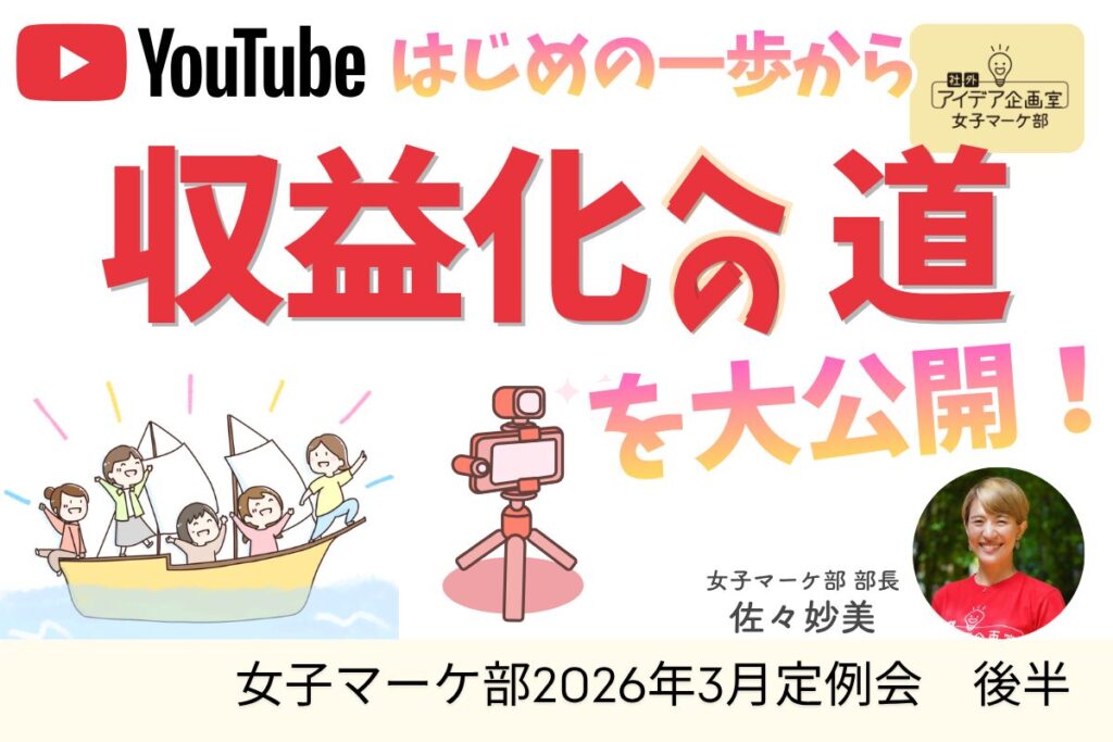 「女性のチカラが世界を変える」「女性は”楽しむ”が仕事」をテーマに活動する女子マーケ部は、参加費無料の女性限定コミュニティです。